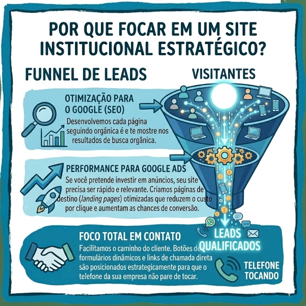 Performance para Google Ads: Se você pretende investir em anúncios, seu site precisa ser rápido e relevante. Criamos páginas de destino (landing pages) otimizadas que reduzem o custo por clique e aumentam as chances de conversão.